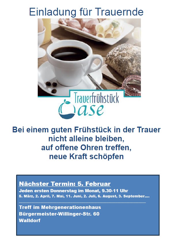 Bei der Frühstücks-Oase finden Sie Menschen, die Sie in Ihrer Trauer verstehen. Sprechen, gehört werden und zuhören – das ist eine Stärkung, die Sie als Trauernder bei der Frühstücks-Oase erfahren können.