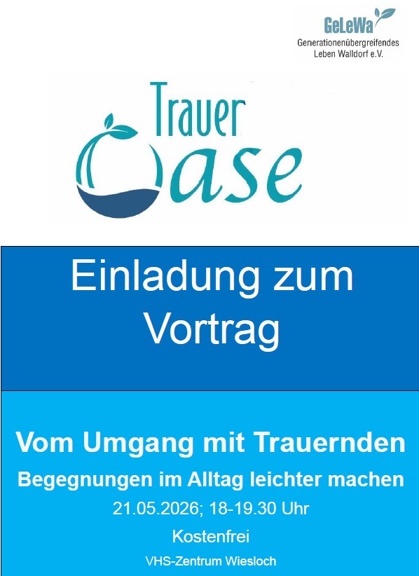 Erfahrene Trauerbegleiter der Trauer-Oase Walldorf vom Verein GeLeWa e.V. führen den Abend durch.