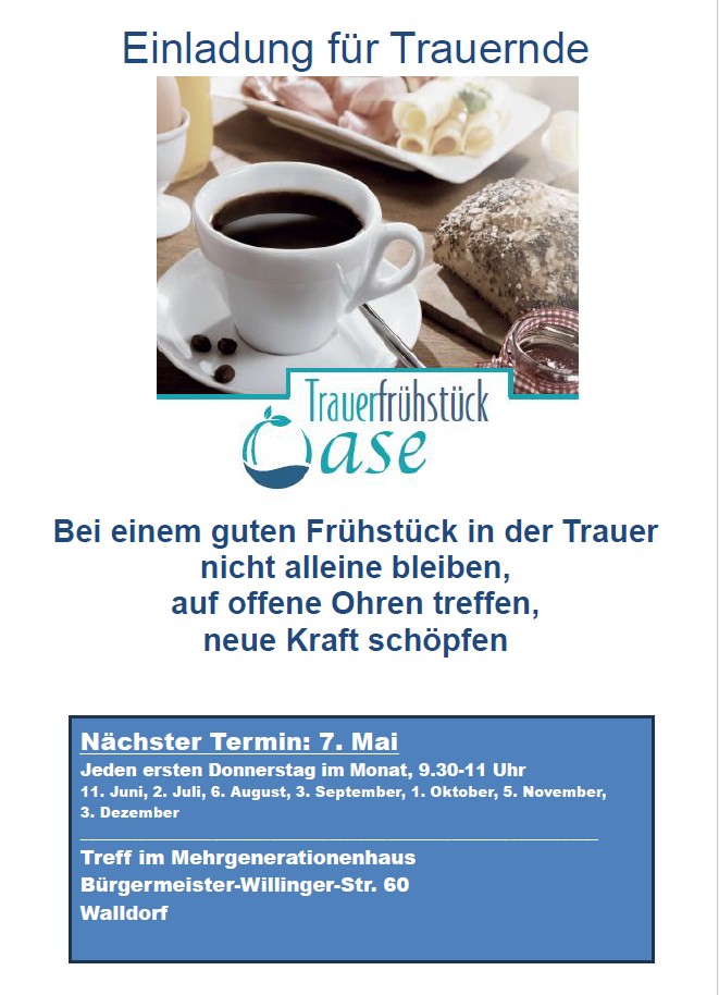 Daher laden wir Sie herzlich zu einem rundum stärkenden Frühstück in die Oase für Trauernde ein. Das Frühstück wird von einfühlsamen Trauerbegleitern geleitet.